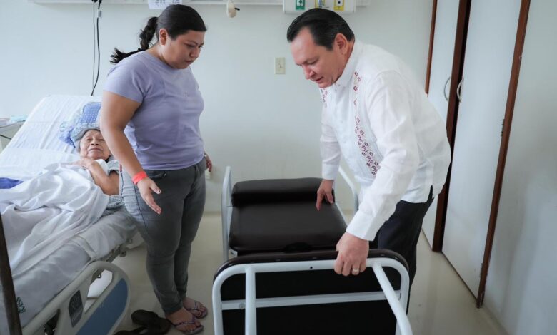 Durante el recorrido, el titular del Ejecutivo estatal platicó con Yolanda Cua Chalé, quien acompaña a su madre, Perpetua Chalé y Chim, durante su recuperación tras una cirugía de hernia, y reconoció la mejoría que representan estas sillas cama para los familiares que pasan las noches en vela al cuidado de sus pacientes.