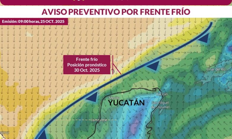 La Coordinación Estatal de Protección Civil (Procivy) informó que durante la noche del miércoles 29 y las primeras horas del jueves 30 de octubre se prevé el ingreso de un frente frío al estado de Yucatán.