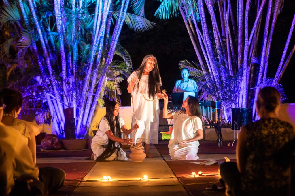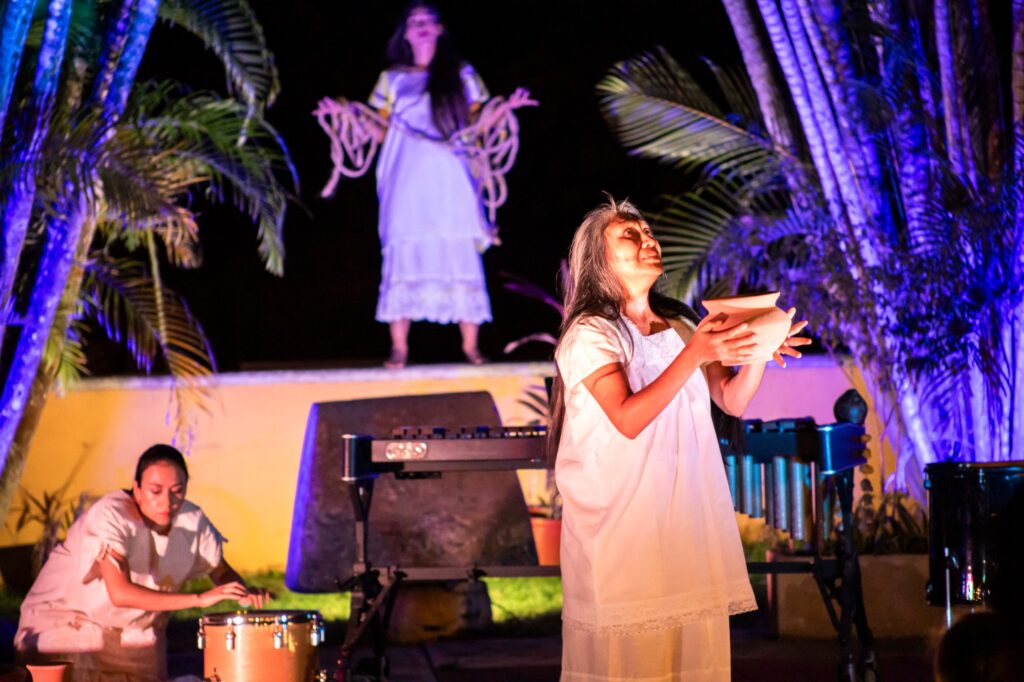 Sobre la obra, la actriz y dramaturga maya Socorro Loeza Flores explicó que el proyecto se basa en escritos antiguos como el Popol Vuh, los Cantares de Dzitbalché y relatos como La soga viva, La última agua del cenote y Las tres vírgenes.