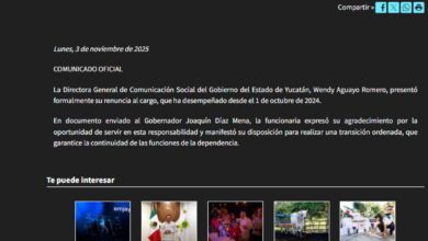 Mérida, Yucatán; 3 de noviembre de 2025.- La licenciada Wendy Aguayo Romero presentó formalmente su renuncia al cargo de Directora…