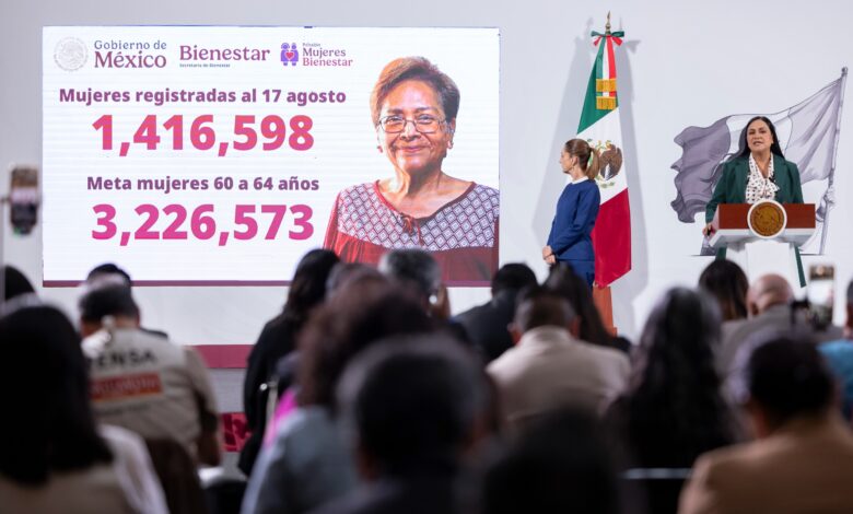 Informó que desde el 1 de agosto y hasta el 30 de agosto se lleva a cabo la inscripción de mujeres de 63 y 64 años, de las cuales ya se han registrado más de un millón, recordó que está abierto el registro para la Pensión Mujeres Bienestar.
