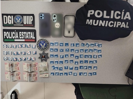 En un segundo punto, en calle Independencia, en la colonia Villa Cuauhtémoc, en un domicilio al parecer relacionado con los detenidos, las fuerzas de seguridad encontraron cuatro armas de fuego, un arma hechiza desarmada, un inhibidor de señales, dos motocicletas con reporte de robo, 103 envoltorios con una sustancias con características de la droga conocida como cristal, 21 empaques con polvo con similitudes a la cocaína, una bolsa con la misma sustancia, seis equipos de telefónica celular, dos básculas denominadas grameras, dos cámaras fotográficas, una de video, un radio de comunicación y dinero en efectivo.