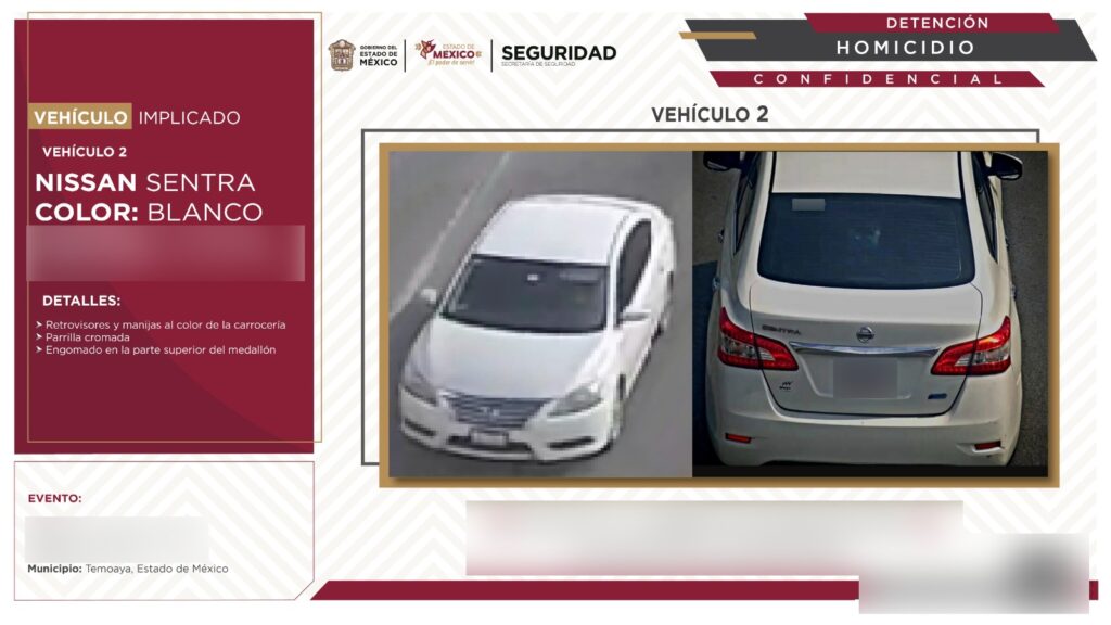 Tras el análisis de imágenes de cámaras de videovigilancia, se identificó que los probables responsables utilizaron un vehículo de la marca Nissan Sentra, color blanco, por lo que de manera inmediata ingresaron la información en plataformas institucionales; el sistema de Arcos Carreteros emitió un hit de alerta por el cruce del automotor, por lo que implementaron un cerco virtual y dieron seguimiento en tiempo real a la ruta establecida por la unidad motriz, a la vez que avisaron a uniformados en campo para su atención.