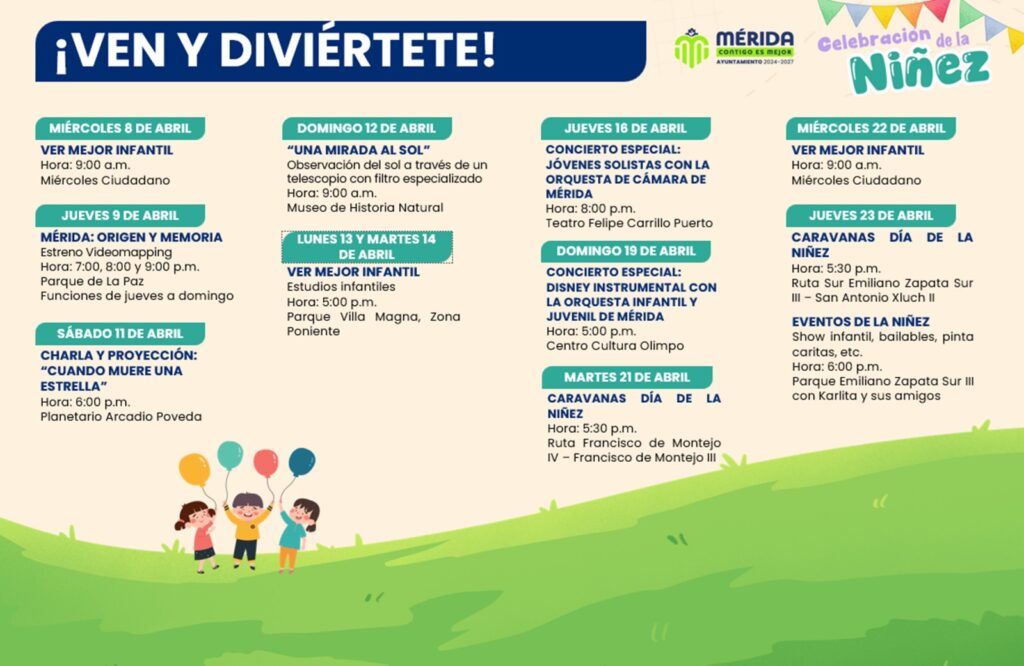 Sobre el Mes de la Niñez la alcaldesa anunció más de 30 actividades entre los que se encuentran «Ver Mejor», centrado en la entrega de lentes gratuitos; Videomapping en el parque de la paz (9 de abril estreno); Eventos en Animaya (aniversario el 30 de abril) así como actividades en el Parque del Centenario y cuyas eventos anexo en una gráfica está publicación.