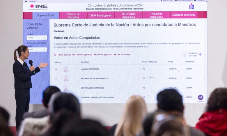 Sheinbaum Pardo destacó que le da gusto que el próximo presidente de la Corte, sea un gran abogado de origen mixteco, Hugo Aguilar Ortiz. “Solo Hugo sacó más votos que el PRI en el 2024″, mencionó la mandataria sobre los más de 6 millones de votos al candidato Hugo Aguilar Ortiz para presidir la SCJN.