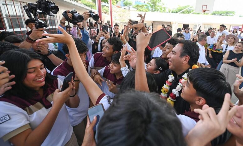 Acompañado de su esposa, Sofía Espinoza Abarca, y su hija, Yazmín Ramírez Espinoza, el mandatario recorrió ambos planteles, donde fue recibido con muestras de cariño por parte de la comunidad escolar, que también le expresó felicitaciones con motivo de su cumpleaños. En este marco, alumnas y alumnos del programa de alfabetización Chiapas Puede le entregaron un reconocimiento elaborado por ellos mismos, en el que plasmaron sus nombres y mensajes de buenos deseos.