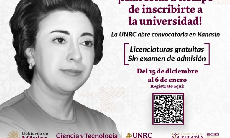 Con la finalidad de ampliar el acceso a la educación superior en 2026, el Gobierno del Estado informó que la Universidad Nacional Rosario Castellanos (UNRC), Unidad Kanasín, mantiene abierta su convocatoria de ingreso, con una oferta educativa gratuita, de calidad, con enfoque humanista y sin examen de admisión, dirigida a personas que concluyeron el bachillerato o se encuentran próximas a egresar.