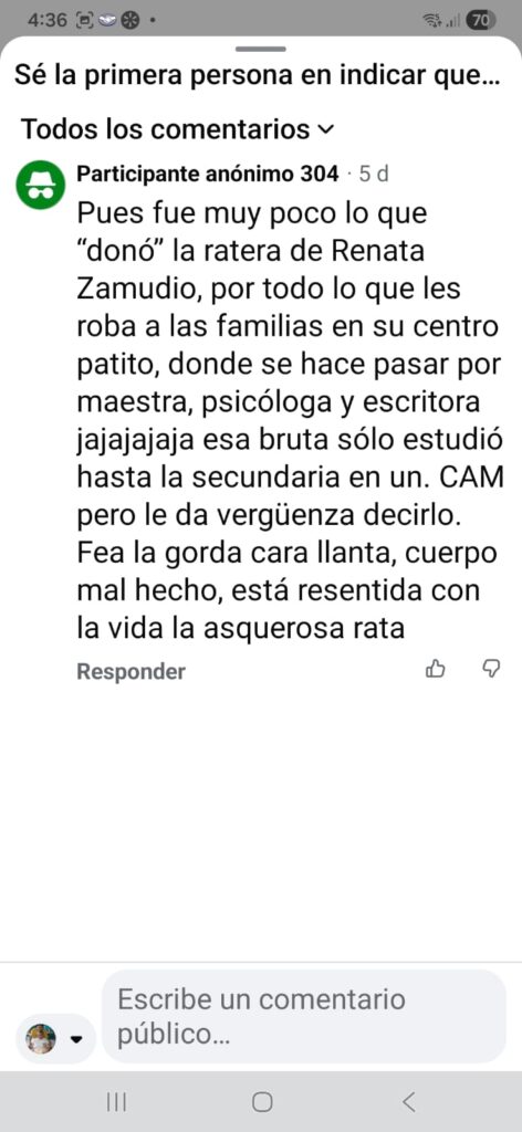 Estos ataques contra Reny Zamudio, como la conocen, ya ameritaron que interpongan una denuncia ante la Fiscalía General de Justicia, que ya investiga a las personas que están detrás del ciberbullying, que se esconden cobardemente detrás del anonimato.