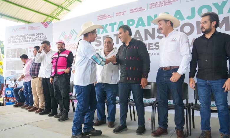 En Ixtapangajoya, aseguró que la región Norte “no será la más olvidada”, pues su desarrollo es ahora una prioridad. En este contexto, entregó becas Rosario Castellanos para la alfabetización e insumos agrícolas; inauguró infraestructura educativa en la Telesecundaria 80 Juan Sabines Gutiérrez, y anunció la rehabilitación de caminos para mejorar la conectividad y movilidad entre municipios, además del proyecto del sistema de agua potable municipal.