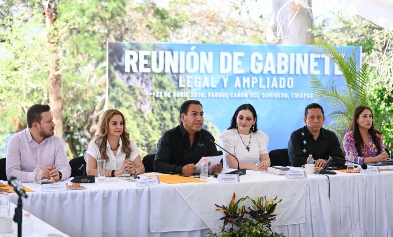 El gobernador Eduardo Ramírez Aguilar encabezó una reunión con integrantes del Gabinete Legal y Ampliado desde el Mirador Los Chiapa, en el Parque Nacional Cañón del Sumidero, donde destacó los avances de la administración pública estatal y convocó a las servidoras y los servidores del pueblo a actuar con conciencia, responsabilidad social y vocación de servicio, con el propósito de fortalecer el bienestar y la prosperidad de Chiapas, en especial en los 12 municipios históricamente olvidados.
