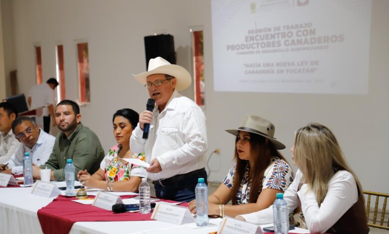 Con la participación de productores del Sur del estado esta mañana se llevó a cabo la reunión de trabajo Encuentro con productores ganaderos “Hacia una nueva Ley de Ganadería en Yucatán”, impulsada por la Comisión Permanente de Desarrollo Agropecuario del Congreso del Estado, en la que las y los legisladores escucharon las propuestas de productores locales para fortalecer el proyecto de la nueva ley ganadera para la entidad, como parte del proceso de parlamento abierto.