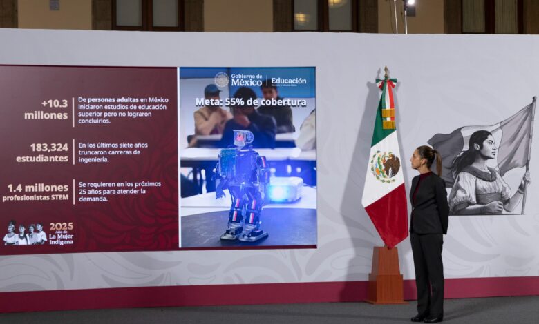 También detalló que existen plataformas privadas con mayor alcance que todas las instituciones públicas de educación superior juntas, lo que obliga al Estado a actuar. Como ejemplo, mencionó que Coursera tiene 7.3 millones de usuarios en México, mientras que el sistema de educación superior apenas suma 5.5 millones de estudiantes.