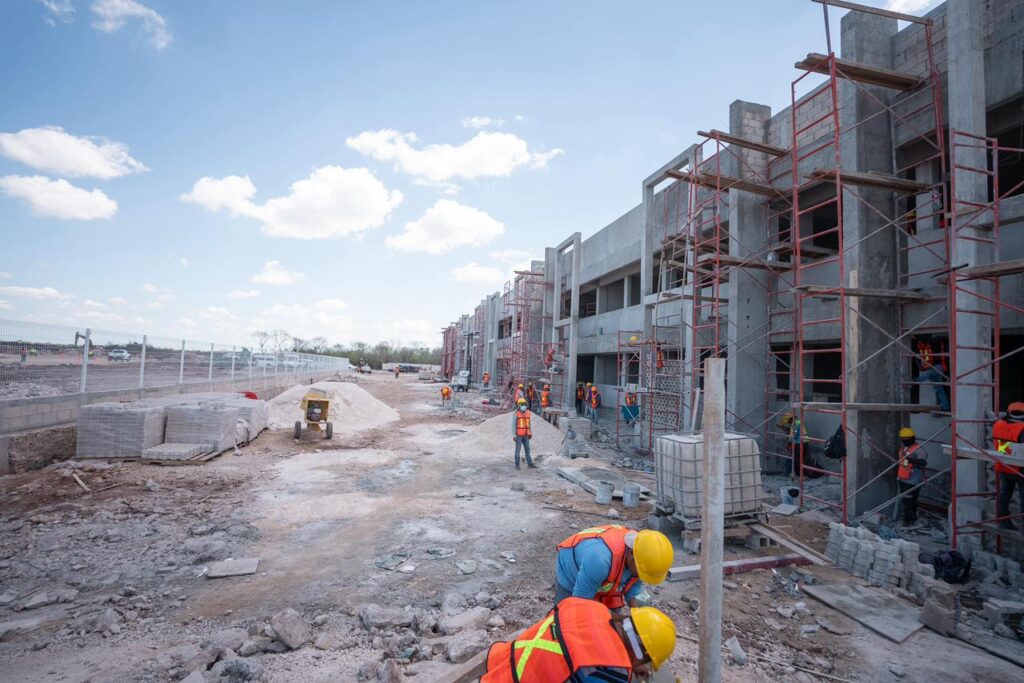 Durante el recorrido, Díaz Mena constató el avance de esta obra, que permitirá ofrecer 10 licenciaturas e ingenierías vinculadas con las necesidades del mercado laboral yucateco y con el crecimiento de sectores estratégicos impulsados por los proyectos del Renacimiento Maya, entre ellos los parques industriales, la modernización del Puerto de Altura de Progreso y el Tren Maya de carga.