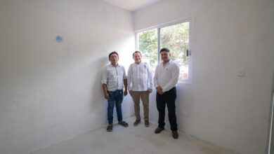 Yaxkukul, Yucatán, a 27 de diciembre de 2025 El mandatario constató en Yaxkukul las obras de vivienda del programa Construyendo…