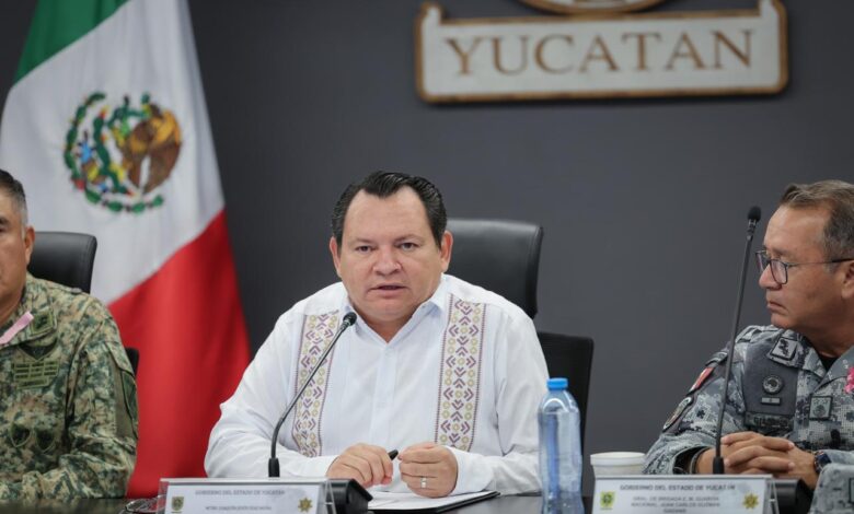 El mandatario encabezó la sesión de la Mesa Estatal para la Construcción de la Paz y Seguridad en Yucatán, donde reiteró su compromiso de mantener el monitoreo y la coordinación interinstitucional para proteger a la población durante la temporada de lluvias y ciclones.