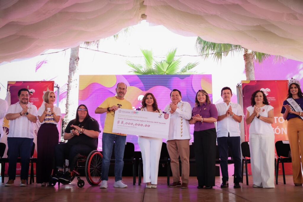 Durante el evento Teletón 2025, el Gobernador Joaquín Díaz Mena, junto a la Presidenta honoraria del DIF Yucatán, Mtra. Wendy Méndez Naal, entregó un donativo de ocho millones de pesos para fortalecer la atención en el CRIT Yucatán, reafirmando su compromiso de construir un estado más incluyente y de promover la igualdad de oportunidades y el bienestar de las familias que reciben atención en rehabilitación e inclusión social.
