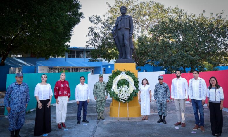La funcionaria estatal asistió en representación del Gobernador Joaquín Díaz Mena y estuvo acompañada por representantes de los tres poderes del Estado, quienes participaron en la guardia de honor y colocaron una ofrenda floral.