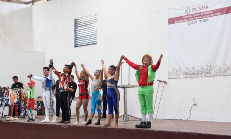 La magia del circo llegó a las personas privadas de la libertad en el Centro de Reinserción Social (Cereso) de Mérida, como parte de las actividades orientadas a fortalecer su acceso a la cultura y la convivencia familiar.