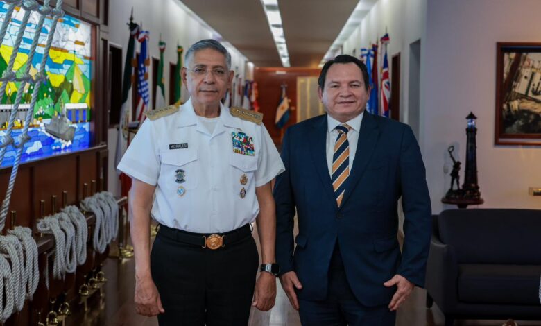El Gobernador Joaquín Díaz Mena y el titular de la Semar, Almirante Raymundo Pedro Morales Ángeles, sostuvieron un encuentro en la Ciudad de México para evaluar los avances del proyecto de modernización del Puerto de Altura de Progreso.