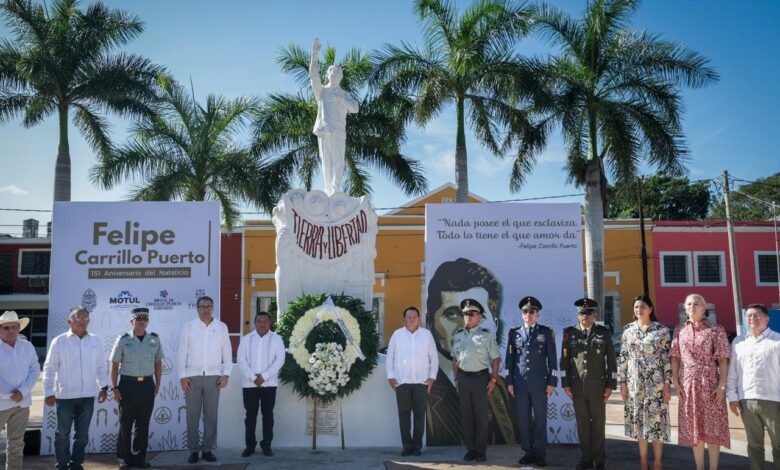 «Hace 151 años nació este hombre al que hoy llamamos con orgullo el mártir del proletariado nacional. Carrillo Puerto creyó que gobernar significaba servir y que el poder debía ser instrumento del pueblo y no privilegio de unos cuantos”, afirmó.