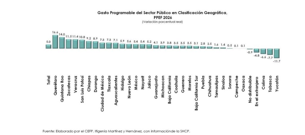Con la aprobación del presupuesto federal para 2026 el gasto programable de Yucatán sufrió una disminución del 11% respecto al 2025; siendo el estado con mayor recorte en este rubro.