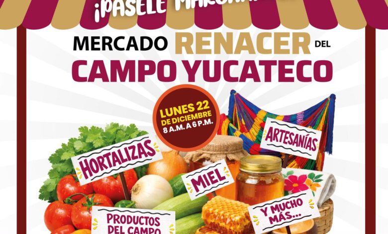 Como una oportunidad para acercar el campo a la ciudad y fortalecer la economía de las familias productoras, este lunes 22 de diciembre se llevará a cabo el Mercado Renacer del Campo Yucateco en el Parque La Plancha donde, de 8:00 a.m. a 6:00 p.m., las y los asistentes podrán adquirir productos frescos directamente de quienes los cultivan y elaboran.