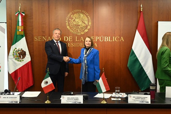 La presidenta del Senado de la República, Laura Itzel Castillo Juárez, se reunió con el vicepresidente de la Asamblea Nacional de la República de Hungría, Lajos Oláh, con quien dialogó sobre el intercambio comercial y cultural entre ambos pueblos, así como de valores en común como respeto a la soberanía, defensa del multilateralismo y promoción de los derechos humanos.