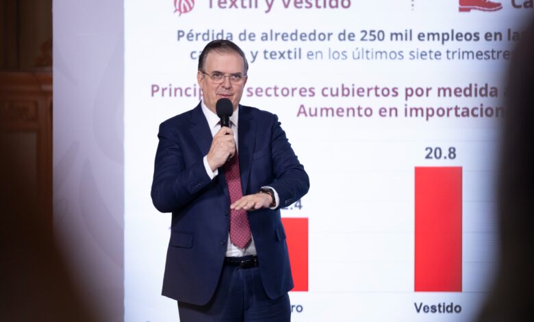 El Secretario de Economía, Marcelo Ebrard Casaubón explicó que el objetivo principal del paquete arancelario, que entrará en vigor a partir del 1 de enero del 2026, es cuidar de 350 mil empleos mexicanos.