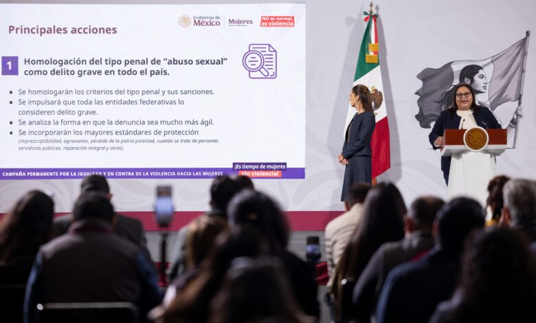 En 9 entidades se tipifica, pero no está suficientemente fortalecido, en 4 entidades se tipifica, pero no se define con claridad qué constituye el abuso sexual, la presidencial es clara: trabajar con todos los congresos locales para lograr una sanción contundente y homologada en todo el país.