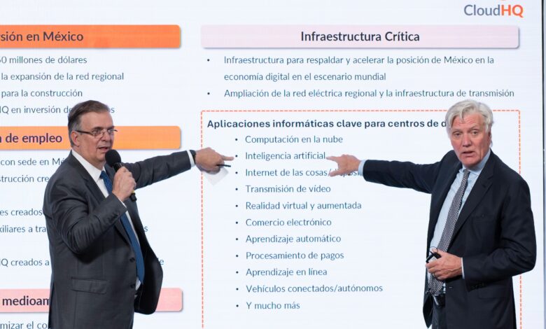 Marcelo Ebrard Casaubon, secretario de Economía, anunció inversión de 4.8 billones de dólares por parte CloudHQ, para un centro de datos divididos en seis diferentes instalaciones.