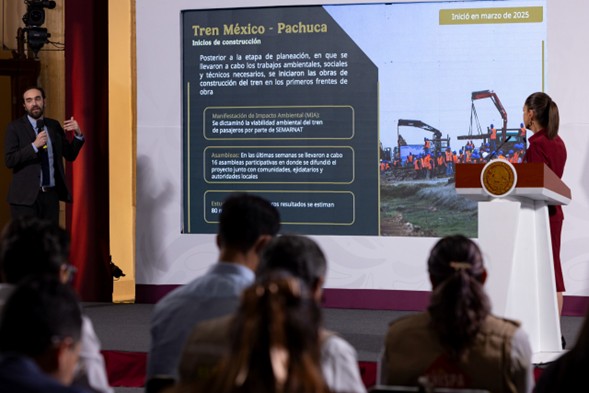 Adrián Lajous Vargas, director general de la Agencia Reguladora de Transporte Ferroviario, informó sobre los avances en proyectos ferroviarios, mencionando que en la presente administración se construirán más de 3 mil kilómetros de vías para pasajeros y destacando el tren México-Querétaro.