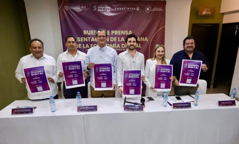 Con el propósito de impulsar la modernización tecnológica del sector productivo yucateco, se presentó la Semana de la Economía Digital 2025, iniciativa de la Secretaría de Economía y Trabajo (SETY) en colaboración con la Cámara Nacional de la Industria de la Transformación (Canacintra), que se llevará a cabo los días 2 y 3 de diciembre en el Centro Internacional de Congresos de Yucatán.