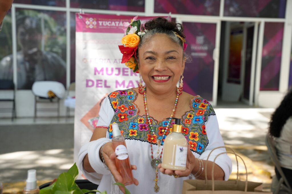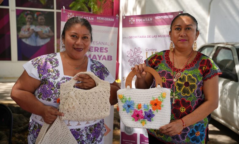 Emprendedoras de seis municipios participaron en la Primera Feria Artesanal por los Derechos de las Mujeres del Mayab, organizada por la Secretaría de las Mujeres.