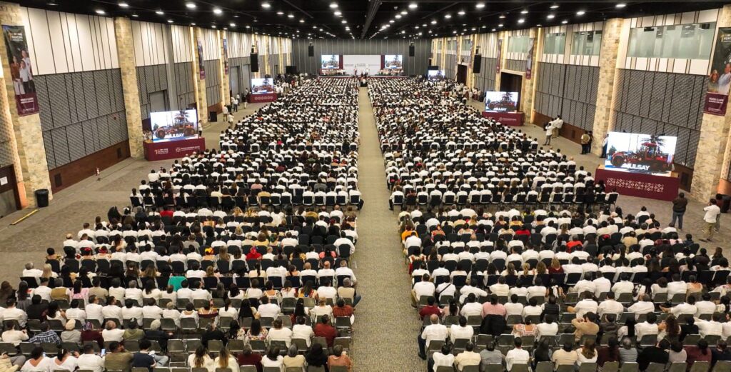 Desde el Centro Internacional de Convenciones, el titular del Ejecutivo estatal indicó que su administración está marcada por la cercanía con la gente, ya que las puertas del Palacio de Gobierno están abiertas de par en par para todas y todos, mediante las Audiencias con el Pueblo, y replicando este ejercicio en colonias y comunidades a través de los Diálogos con el Pueblo.