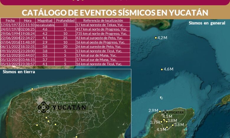 De acuerdo a los registros históricos citados por Protección Civil entre 1900 y 2025 se han documentado al menos 84 sismos en nuestra Península. De ellos, solo 10 han tenido su epicentro en territorio de la entidad yucateca y, el de mayor intesidad se dio en 1978, en mar adentro con una intensidad de 4.6 grados.