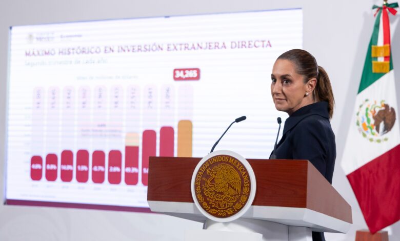 Durante la mañanera del Pueblo, la presidenta Claudia Sheinbaum Pardo presumió que México registró un récord en inversión extranjera directa del segundo trimestre de 2025, reflejando un crecimiento significativo en dicho rubro con 34 mil 265 millones de dólares; este avance representa un resultado positivo para México en coordinación con la Secretaría de Economía (SE).