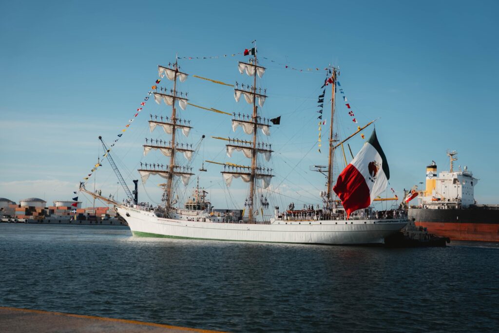 El “Cuauhtémoc” (BE-01) llegó a Yucatán proveniente del puerto de Cozumel y permanecerá varios días en Progreso, con el propósito de compartir con las y los yucatecos el espíritu marinero y los valores de disciplina, honor y servicio que distinguen a la Armada de México.