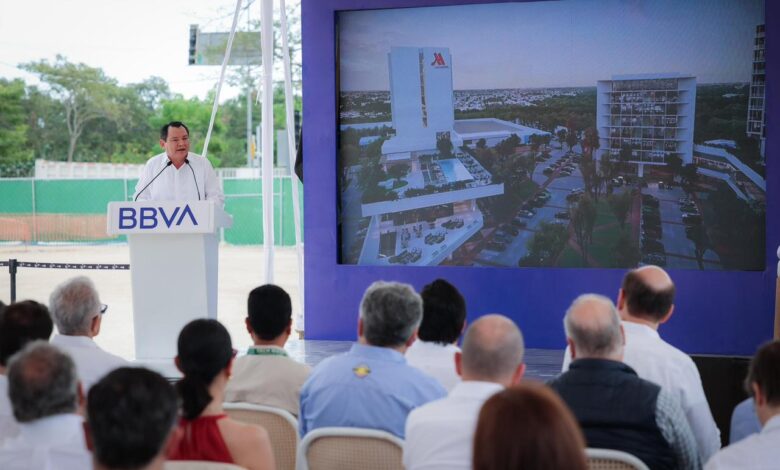 El Gobernador Joaquín Díaz Mena encabezó la colocación de la primera columna para la construcción de la sede de la División Sureste de BBVA en Mérida.